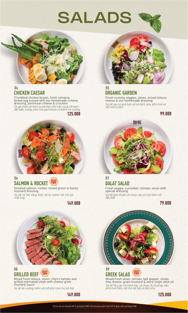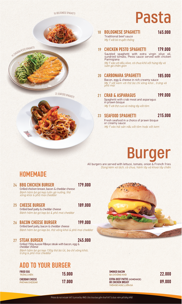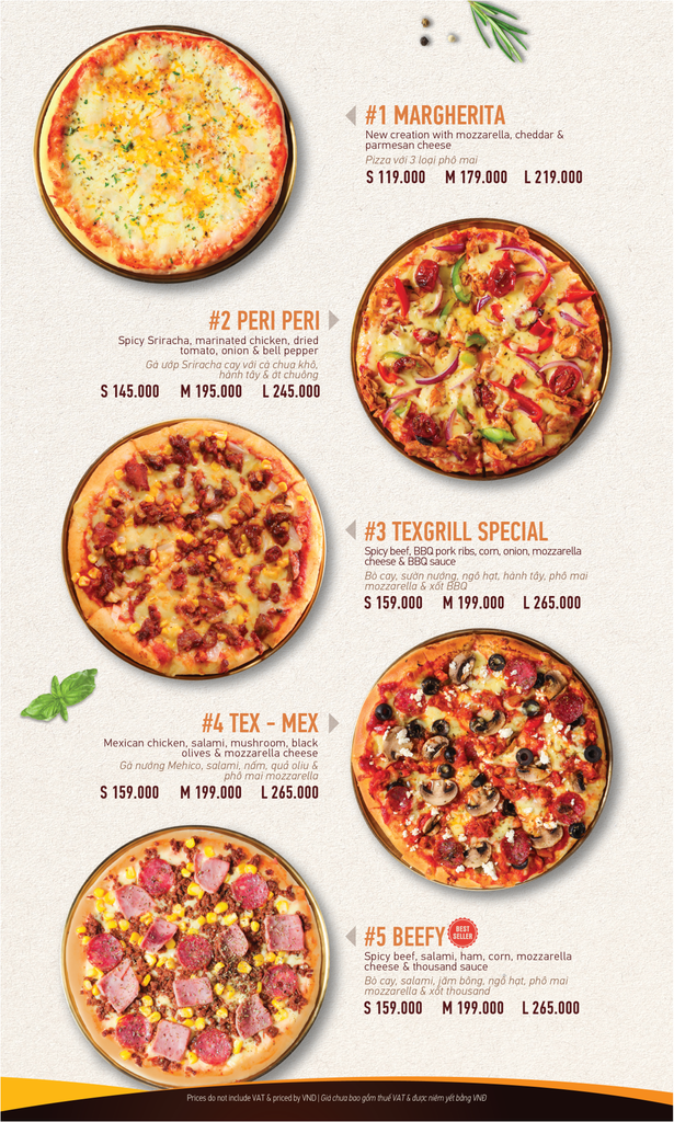 Thực đơn nhà hàng TexGrill Aeon Mall Hải Phòng