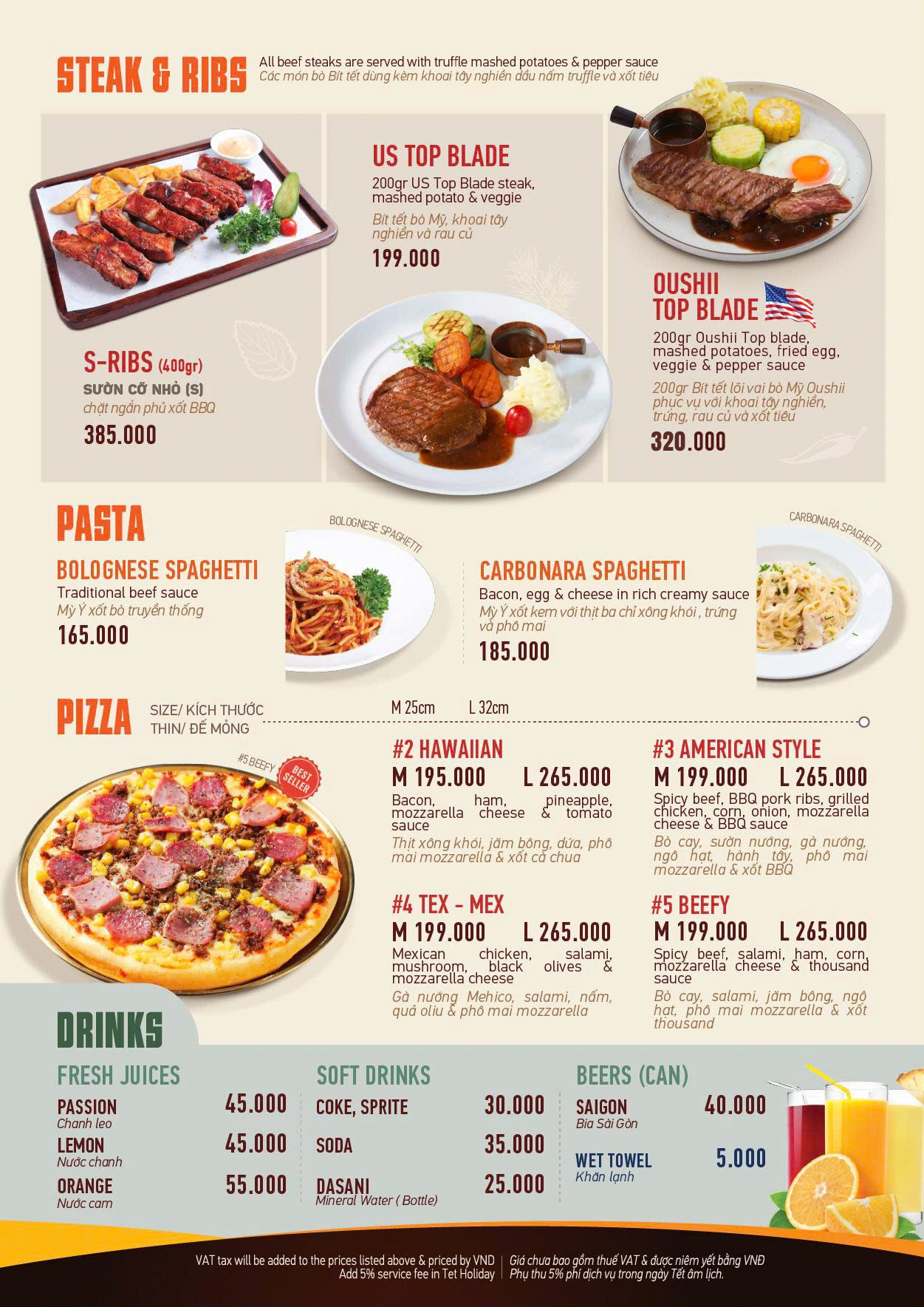 Thực đơn nhà hàng TexGrill Aeon Mall Hải Phòng